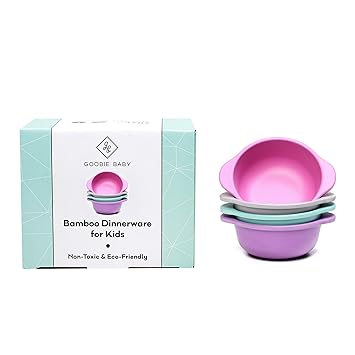 Bamboo Snack Bowls for Kids, Set of 4 Stackable Dinnerware for Toddlers :: Non Toxic Eco Friendly Reusable Dishes : Great Gift