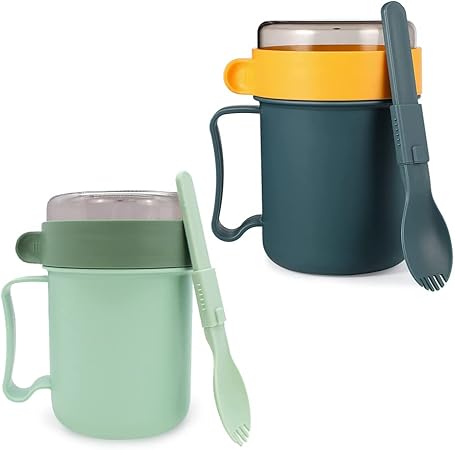 2PCS Soup Mug with Lid, Microwavable Soup Bowls with Handles, 2 Colors Soup Cups with Spoon, Soup Containers with lids for Home