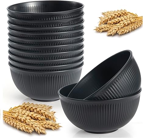 12PCS Unbreakable Cereal Bowls 24 oz, Plastic Reusable Light Weight Bowl, Set of 12, Large Lightweight Bowls Made of Wheat Straw