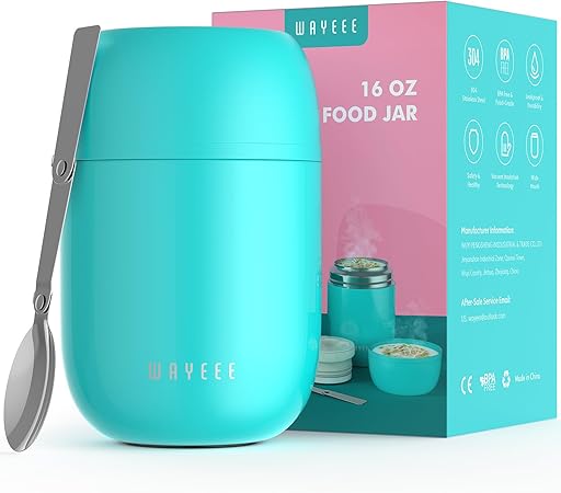 Food Containers for Hot Food Insulated Food Jar, Vacuum Bento Box Lunch Containers 16 oz for Kids Adults, Airtight Stainless