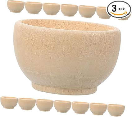 3sets Paintable Miniature Bowls Wooden Decorations Craft Kits for Kids Home Decoration Ornaments DIY Ornament Blank 20pcs*3