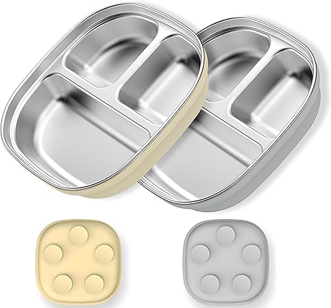 Stainless Steel Toddler Plates with Suction | Non-Slip Divided Baby Plates BPA Free & Non Toxic | Detachable Silicone Base|