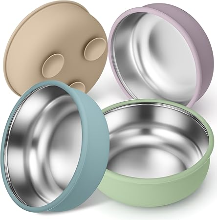 4 Pack Stainless Steel Baby Bowls with Suction – 2-in-1 Toddler Feeding Plates Heat-Resistant Spill-Proof Suction Bowls for Kids