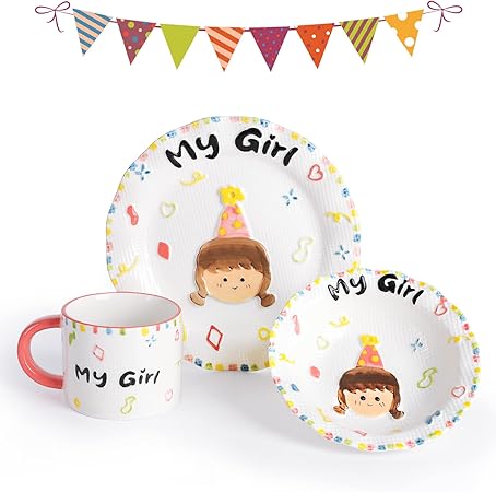 Birthday Gifts For Children - Hand-Painted Boy Girl Ceramic Dessert Plate, Cereal Bowl, Mug - Ideal Gifts for Daughter, Niece,