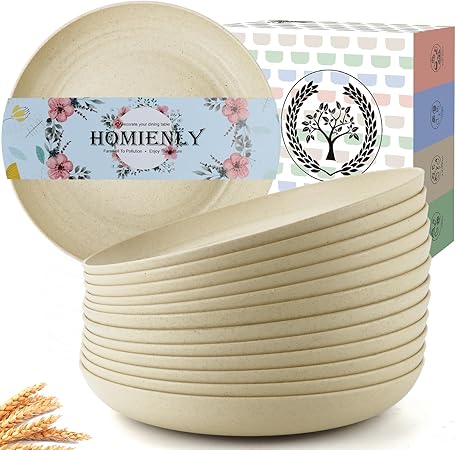 Dinner Plates Set of 8 Alternative for Plastic Plates Microwave and Dishwasher Safe Wheat Straw Plates for Kitchen Unbreakable