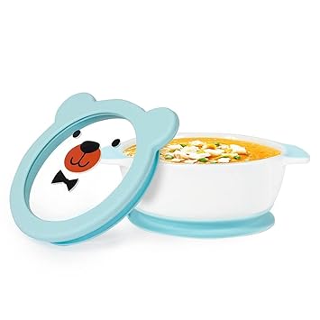 Suction Bowls for Baby & Toddlers (Set of 2) - 100% Silicone w/Plastic Lid - Leak Proof Feeding Supplies - Dishwasher &
