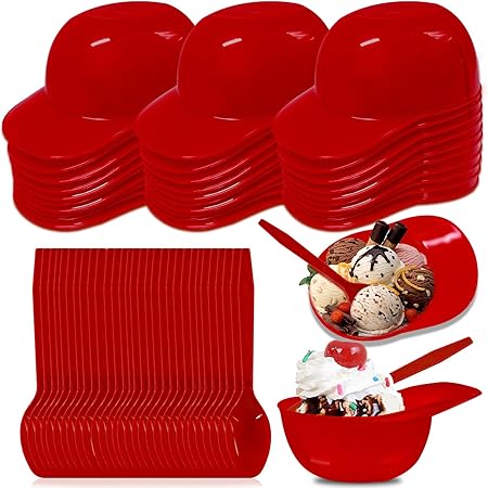 30 Pcs Ice Cream Bowls and 30 Pcs Taster Spoons Set Mini Baseball Helmet Sundae Bowls Plastic Baseball Helmet Snack Dessert Cups