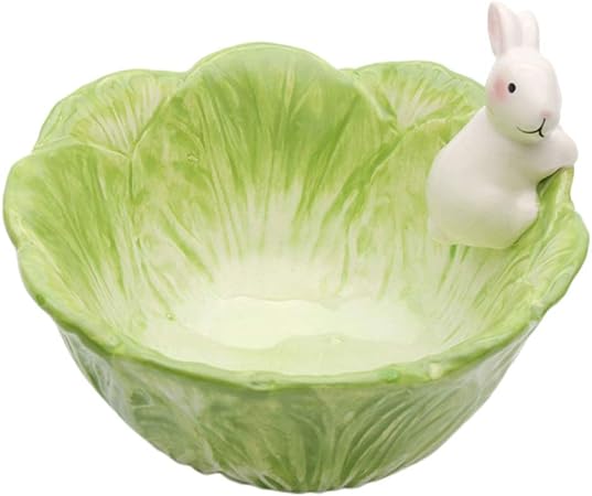Easter Bunny Candy Dish Ceramic Easter Rabbit Candy Bowl Cabbage Shaped Easter Fruit Salad Dessert Bowl Snack Serving Bowl