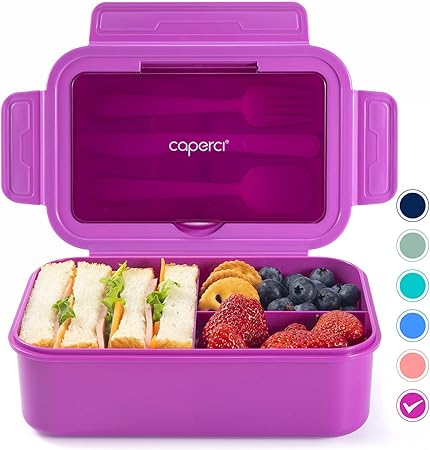 Classic Bento Lunch Box for Adult & Older Kids - Leakpoof 47 oz 3-Compartment Lunch Containers for Adults and Teens, Built-in