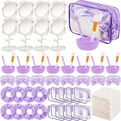 64 Pcs Spa Party Favor Supplies Bulk, Include Face Mask Mixing Bowl Set, Mirror, Headband, Scrunchies, Cosmetic Bags, Face Wash