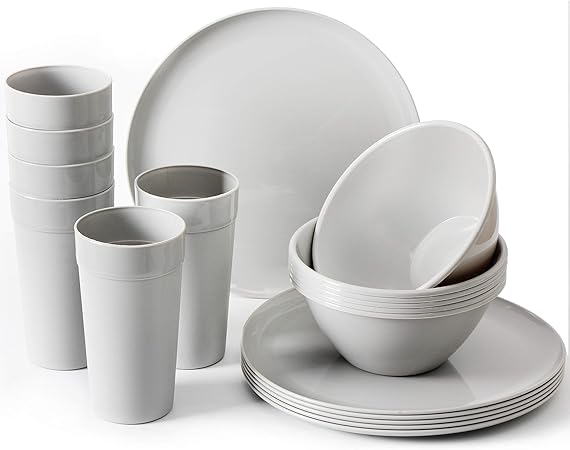 18-Piece Plastic Kitchen Dinnerware Set, Plates, Dishes, Bowls, Cups, Service for 6 (Grey)