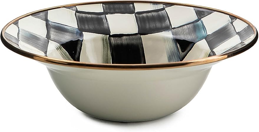 Enamel Breakfast Bowl, Unique Soup Bowl or Cereal Bowl, Dinnerware, Black-and-White Courtly Check, Set of 1