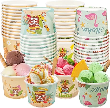 48 Packs 9 oz Tropical Luau Party Paper Ice Cream Cups Disposable Hawaiian Beach Bowls Snack Cups Containers Dessert Soup Bowls
