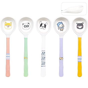 5 PCS Bamboo Kids Spoons Set, Children Utensils Spoons Flatware Cutlery Set, BPA Free | Dishwasher Safe, Child and Kids Feeding