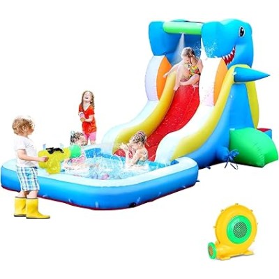 Inflatable Bounce House with Water Slide, Kids Bouncy Castle for Backyard, Outdoor Water Park, Bouncy House Party Fun,