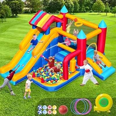 Bounce House for Kids 3-10, 9 in 1 Large Inflatable Bounce Castle for Toddlers Outdoor for Backyard Lawn Jump Bouncy House with