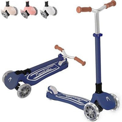 MomnLittle Kick Scooter for Kids Ages 3-10 (Beige/Pink/Navy/White) 3 Wheeled with LED Light-Up Wheels CPSC Certified Foldable