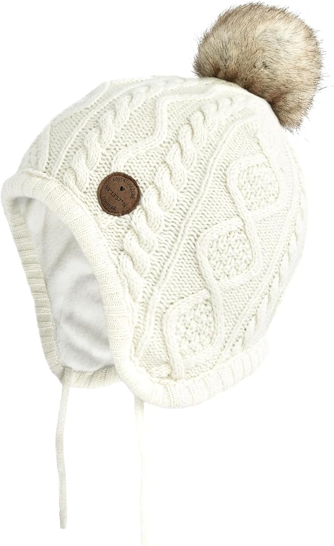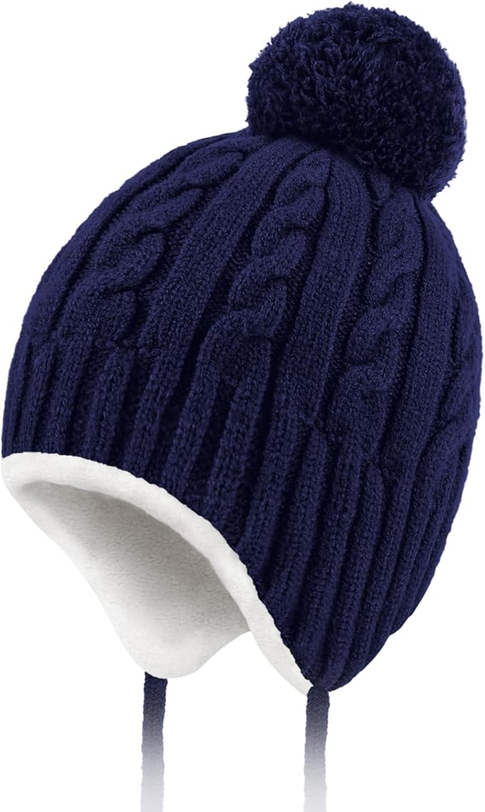 Toddler Baby Boys Girls Winter Hat Kids Ear Flap Warm Fleece Lined Knit Beanie Fur Pom Hat