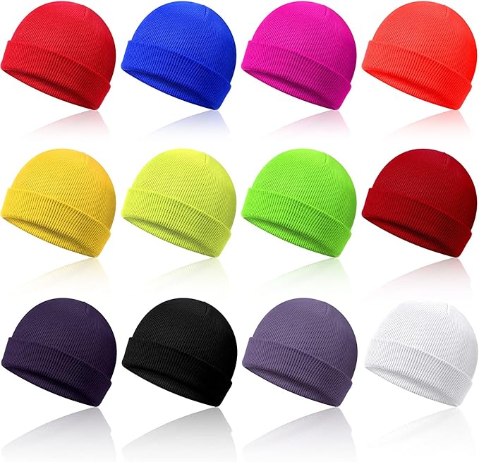 12 Pieces Toddler Beanie for Baby Kids Boys Girls Beanies Winter Knitted Skull Caps Hats, 12 Colors, Chic Color, Medium