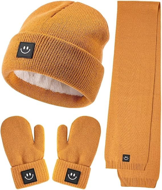 Baby Beanie Mittens Scarf Set,Toddler Kids Winter Hat and Thermal Gloves Neck Warmer Set for Girls Boys