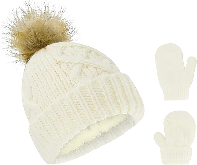 Baby Hats Newborn - Toddler Winter Baby Hat and Mitten Set Boy and Girls Baby Winter Hat Fleece Lined 0-6, 6-12, 12-24 Months