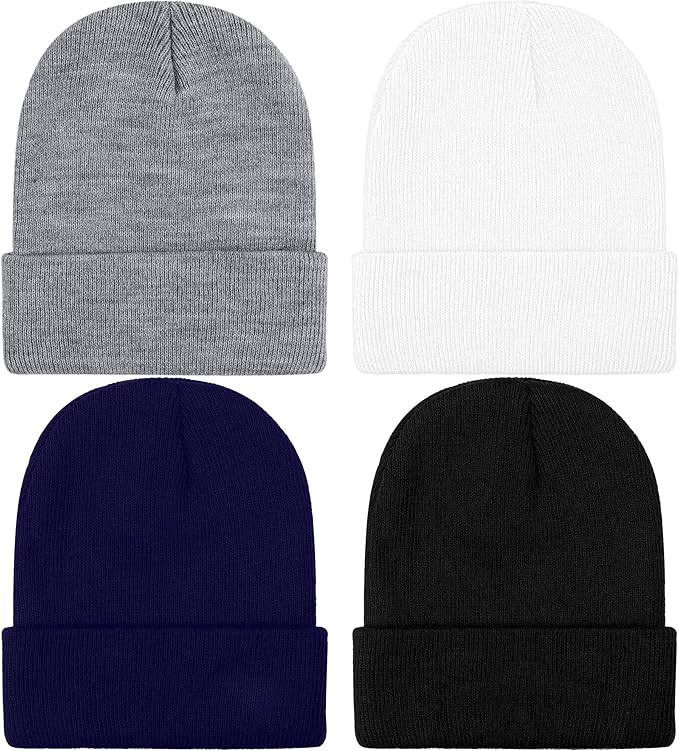 4 Pack Kid's Winter Beanies Acrylic Knitted Beanies Warm Cold Weather Beanie Hats for Boys or Girls