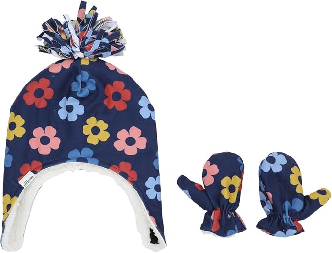 Little Me Fleece Lined Floral Infant/Toddler Pilot Cap and Mittens Set-24 Months Multicolored