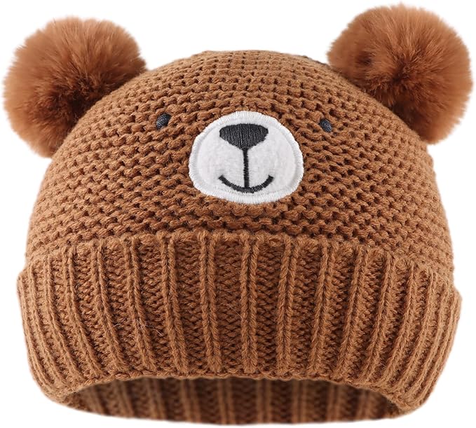 Cute Bear Baby Beanie Pompom Baby Boys Hat Infant Toddler Winter Knitted Beanies for Girls