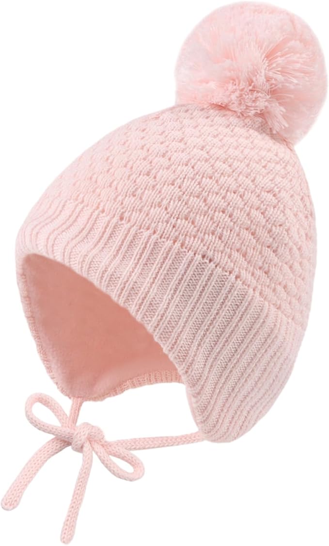Baby Girl Winter Hats Fleece Lined Infant Beanie Hat for Boys Knitted Kids Earflap Beanis with Pompom 0-8 Years