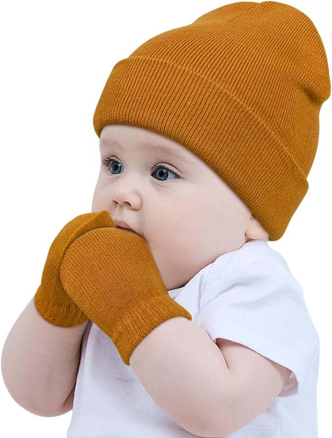 Baby Beanie Hat Gloves Set, Kids Winter Warm Knit Hat with glvoes,Toddler Soft Beanie for Little Boys Little Girls Children