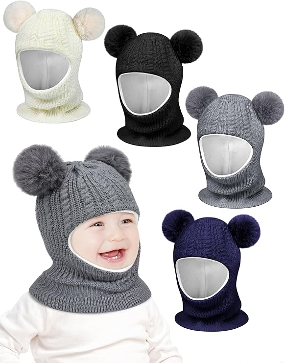 4 Pack Baby Toddler Winter Hat Toddler Hat Scarf Knitted Beanie with Neck Pompom Fleece Lined Earflap for Girl Boy