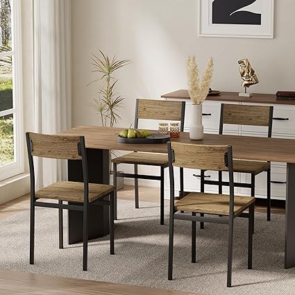 Dining Chairs Set of 4, Rustic Wood Dining Room Chairs with Metal Steel Frame & Slat Back, Modern Farmhouse Chair for Kitchen,