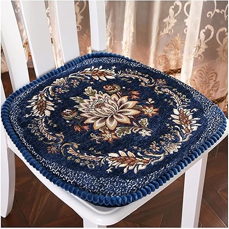 Dining Chair Cushions, Embroidery Seat Cushion European Dinette Pad Stool Mat Indoor Outdoor Non-Slip Chair Pads Tie Zipper,