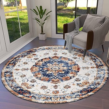 3ft Soft Round Area Rugs Retro Boho Ethnic Floral Totem Indoor Carpet for Living Room Bedroom Nursery Washable Circle Floor Mats