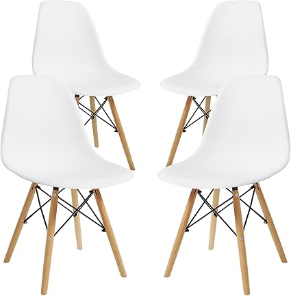 Modern Style Dining Chairs, Mid Century Plastic Dining Chair with Wood Legs, for Kitchen, Dining, Bedroom, Living Room, Set of