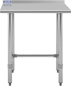 Hally Open Base Stainless Steel Table 24 x 30 Inches, NSF Commercial Heavy Duty Prep & Work Table with Backplash and Galvanized