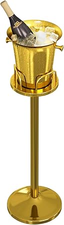Ice Bucket with Stand Christmas Stainless Steel Standing Ice Bucket Ice Cube Container, Wine Bucket on Stand Gold Champagne Ice