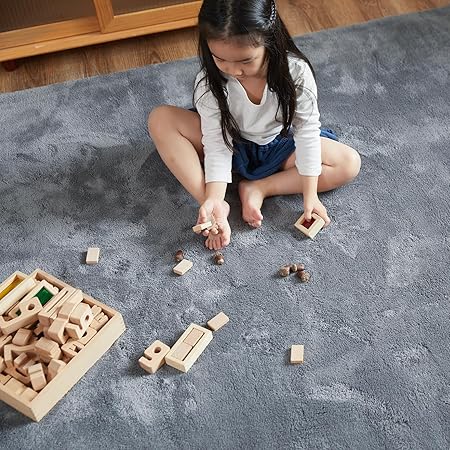 Solid Plush Area Rug 5x7 Performance Shaggy Washable Rug Indoor Soft Modern Faux Wool Cozy Non Slip Carpet for Living Room Kids