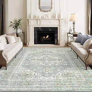 Area Rugs for Living Room - 9x12, Boho Non-Slip Low Pile Carpet Machine Washable Rugs for Bedroom, Farmhouse, Office, Dining